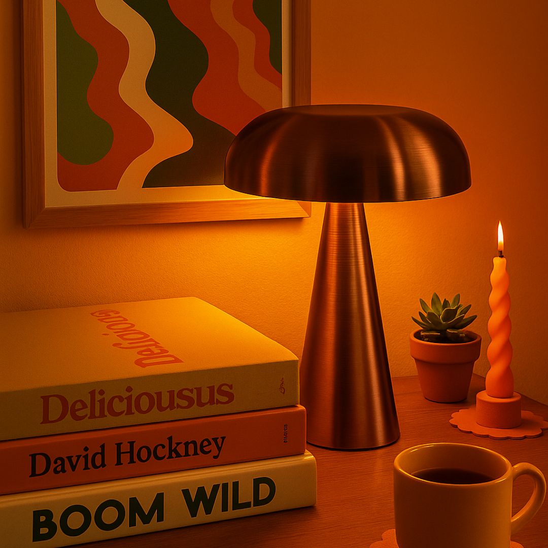 - Design Style: Bauhaus-inspired form with mushroom-style dome shade