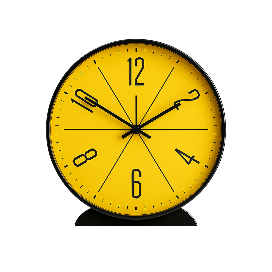 Minimalist yet expressive, this modern wall clock adds structure and bold character to any room. The vibrant yellow face and graphic dial offer a striking focal point—designed for interiors that value clarity and contrast.