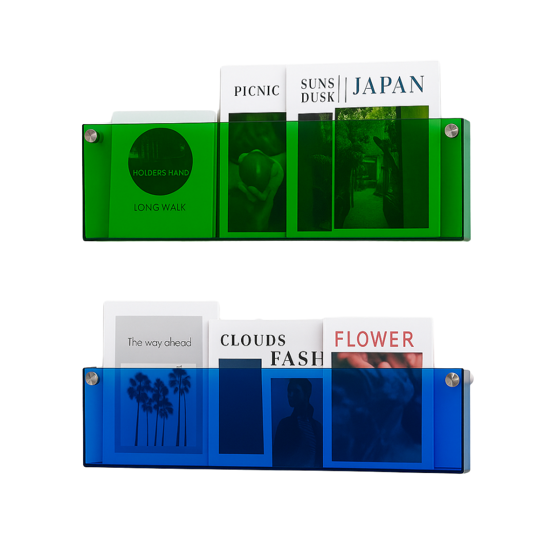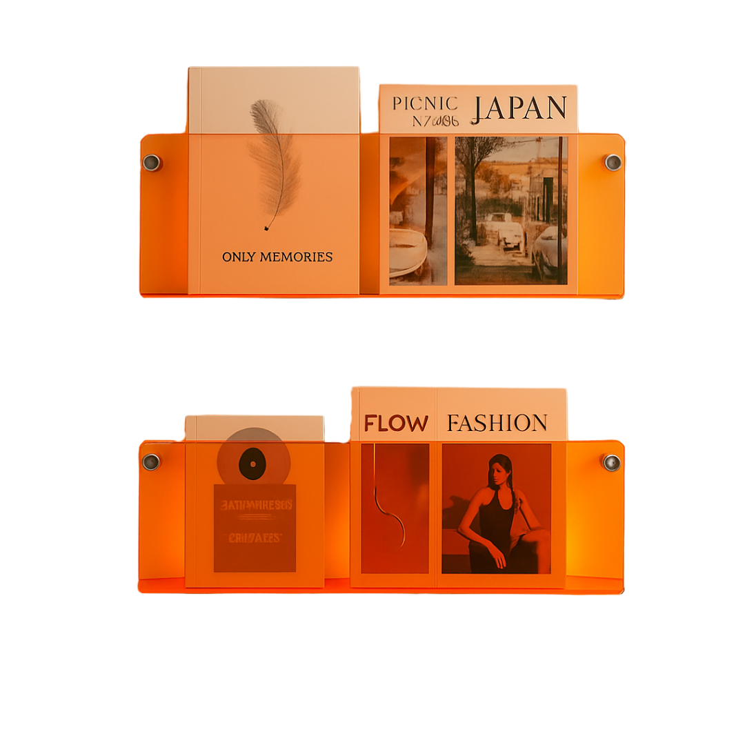 Designed to display and contain, the Floating Acrylic Magazine Holder turns everyday items—books, prints, magazines—into part of your space’s visual language.