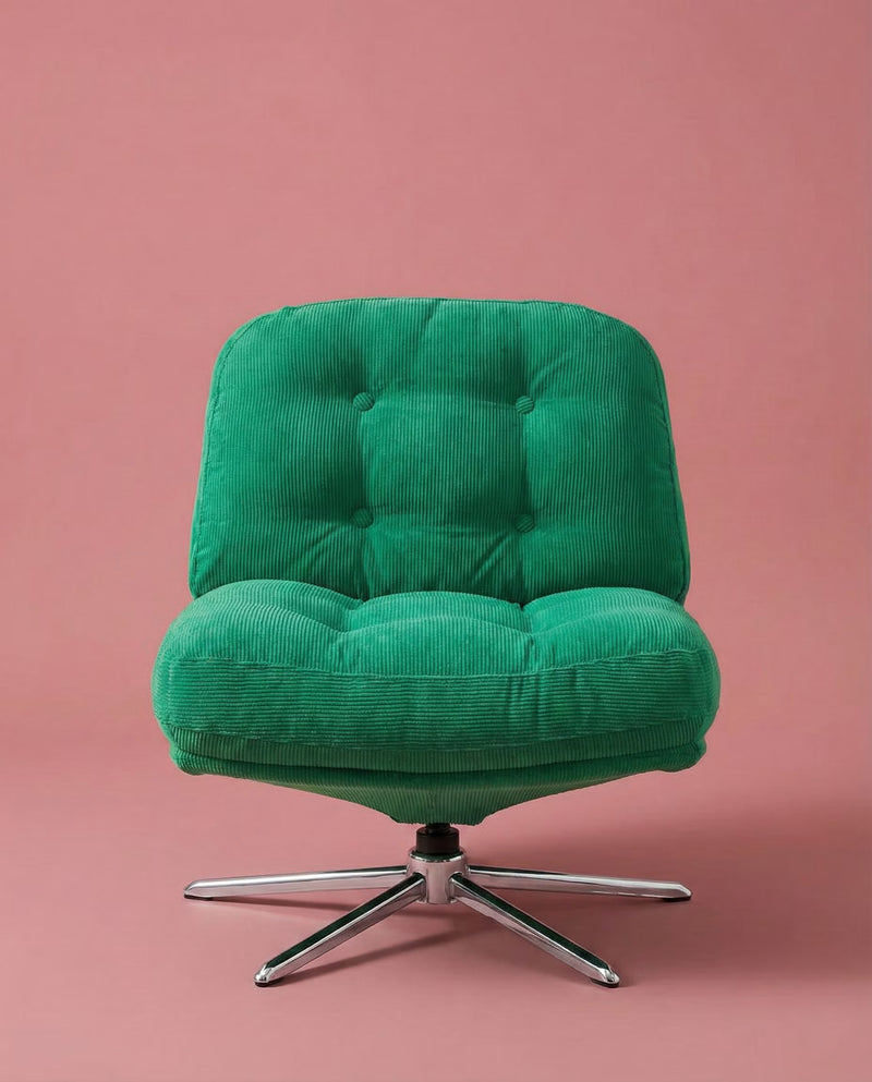 This silhouette has been around since your parents' first flat; but the Archive earns its place now. Soft corduroy upholstery. Polished chrome base. Button-tufted detail that reads considered, not fussy. It's the kind of chair you'd find in a design hotel lobby or a creative director's living room. Except now it's in yours.