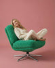 Tufted cushioning that holds its shape but gives where it matters. Wide seat, supportive back, low-to-the-ground stance that feels more lounge than living room. The chrome swivel base moves smooth and quiet - no squeaking, no sticking. Just effortless 360° rotation whenever you need to reach your coffee, face the TV, or pretend you're in a 70s talk show.