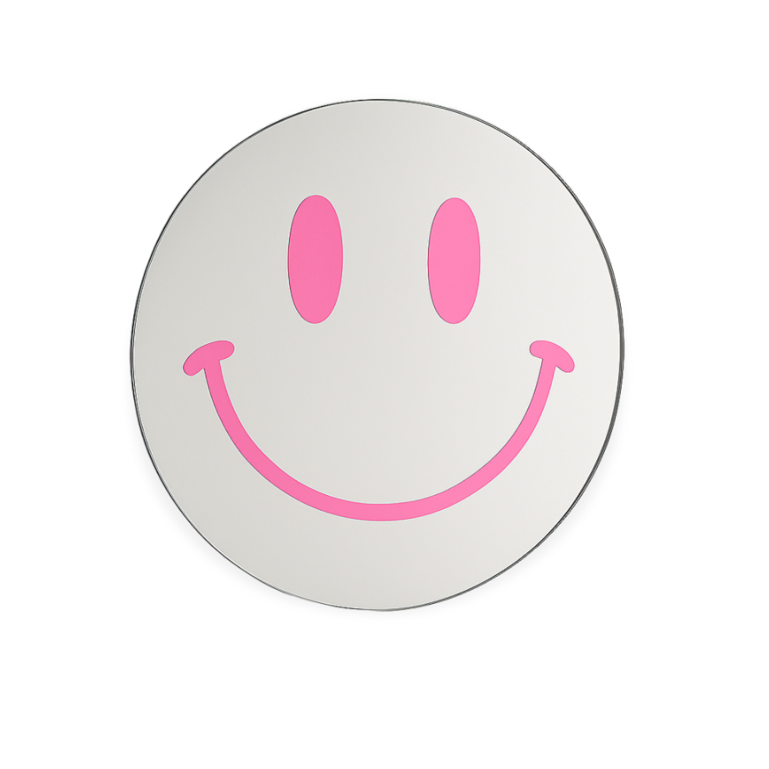 This acrylic mirror gives off main-character energy; with a clean square shape, rounded corners, and a sharp vinyl smiley face front and center. Comes in pink or yellow. Looks good in the background of basically every mirror selfie.